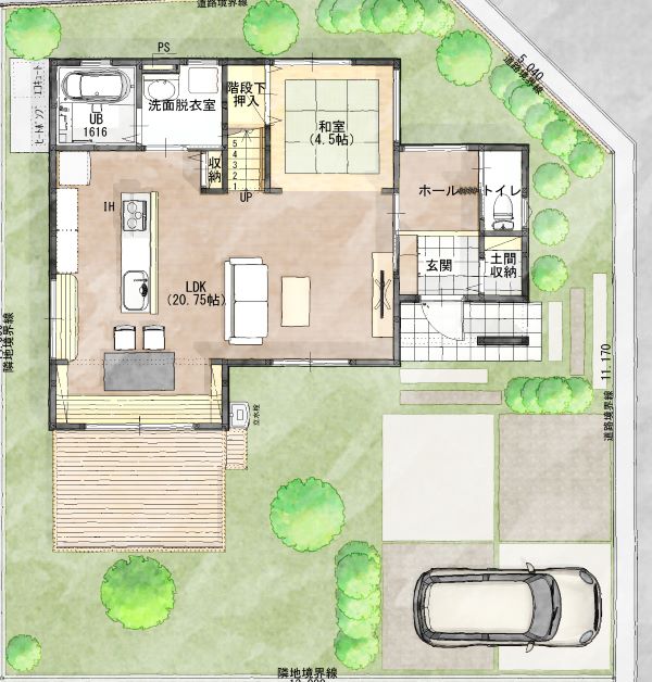- 弊社開発の分譲地の為、街並みに一体感があり、車の通り抜けも少ない閑静な住宅地